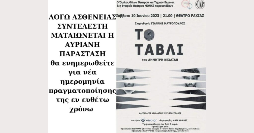 Βέροια: Ματαιώνεται η παράσταση “Το τάβλι”