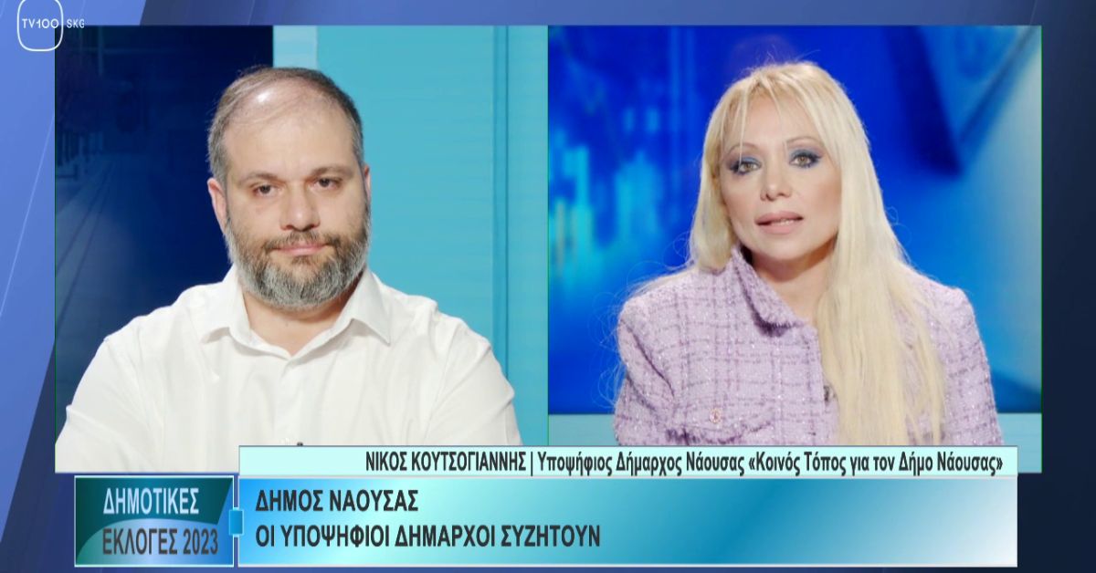 «Σήμερα η απουσία οράματος για τη Νάουσα είναι πλήρης. Ο κόσμος κουράστηκε από τη θεωρία και θέλει έργο. Μόνο εμείς μπορούμε να οδηγήσουμε τον Δήμο σε ασφαλή αναπτυξιακή πορεία!», τόνισε ο επικεφαλής του συνδυασμού «Κοινός Τόπος για τον Δήμο Νάουσας» Νίκος Κουτσογιάννης κατά τη διάρκεια συζήτησης των υποψηφίων δημάρχων του Δήμου Νάουσας, που διοργάνωσε η TV 100. Ο κ. Κουτσογιάννης παρουσίασε την κακή εικόνα της Νάουσας και απέδωσε την αποκλειστική ευθύνη για αυτή την εικόνα στον κ. Καρανικόλα. «Οι κάτοικοι και οι λιγοστοί επισκέπτες βλέπουν έναν τόπο βρώμικο, χωρίς φωτισμό, έναν τόπο καταθλιπτικό, που είναι έτσι με αποκλειστική ευθύνη του κ. Καρανικόλα», είπε.
