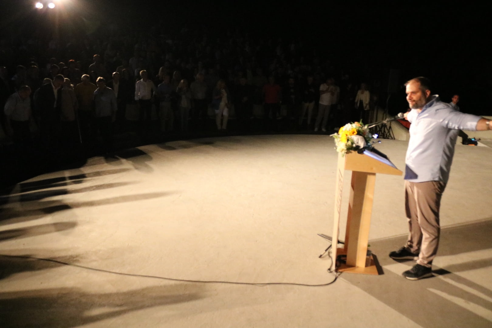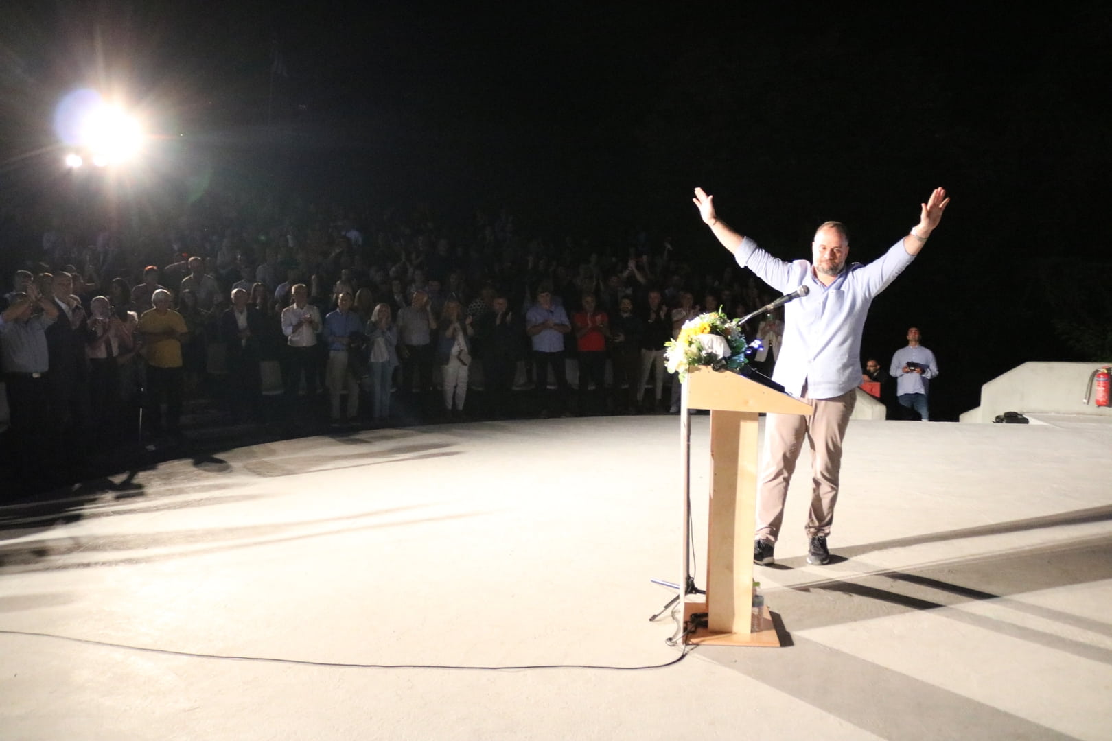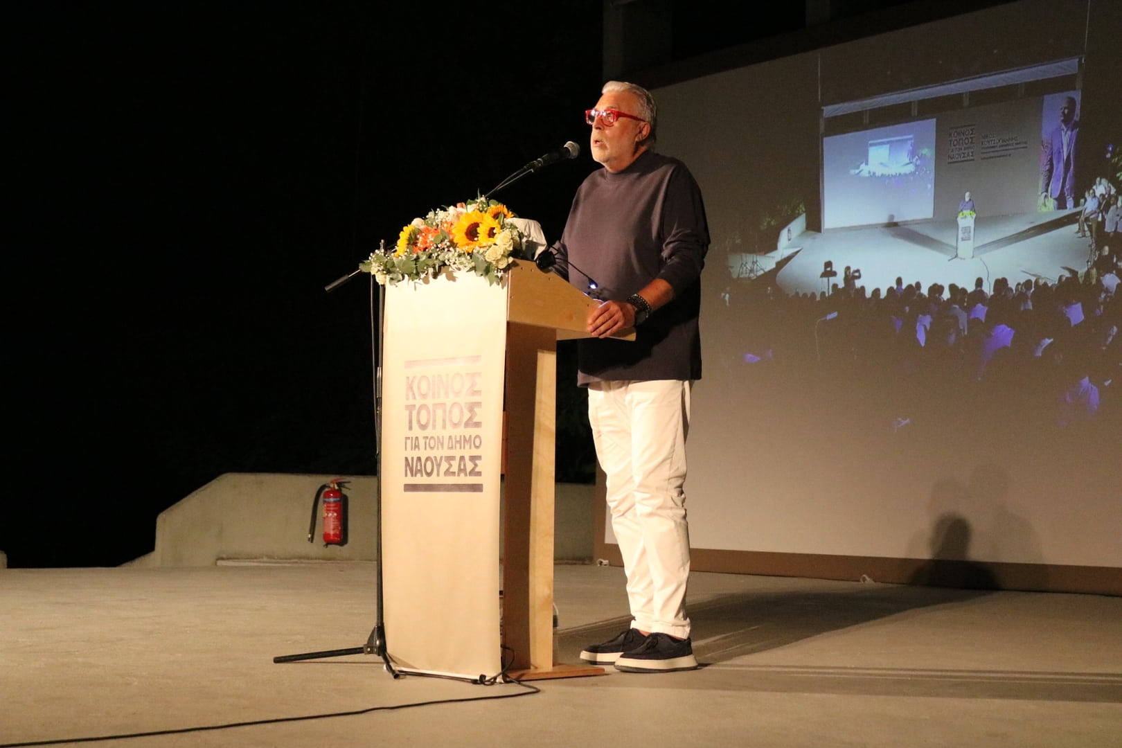 Στο κατάμεστο Θερινό Θέατρο Νάουσας, μπροστά σε ένα ενθουσιώδες κοινό, ο κ. Κουτσογιάννης χαρακτήρισε τις φετινές εκλογές ως μία μάχη ανάμεσα στην ορμητική και παθιασμένη αγάπη για τον τόπο που εκφράζεται με ιδέες, σχεδιασμό και ακούραστη προσπάθεια και στην απάθεια, στο χαμηλότερο μέσο όρο και στην πελατειακή νοοτροπία. «Η σημερινή δημοτική αρχή πρέπει επειγόντως να αποχωρήσει», είπε χαρακτηριστικά.