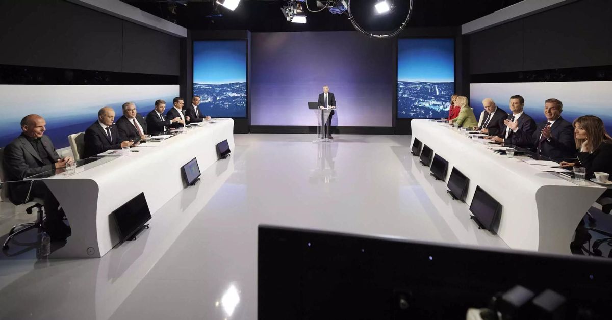 Την Τετάρτη 10 Μαϊου, 11 ημέρες πριν από την διεξαγωγή των βουλευτικών εκλογών, διεξήχθη η ‘τηλεμαχία’ (υιοθετούμε τον νεολογισμό που προκρίνει ο γλωσσολόγος Γεώργιος Μπαμπινιώτης) μεταξύ των πολιτικών αρχηγών των έξι κοινοβουλευτικών κομμάτων.