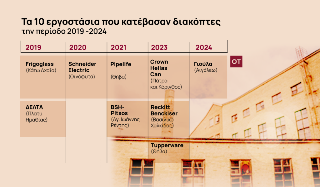 Δέκα εργοστάσια (μαζί με αυτό της Γιούλας με περισσότερους από 120 εργαζόμενους) κατέβασαν διακόπτες όλο αυτό το διάστημα, με το φάντασμα της αποβιομηχάνισης να συνεχίζει να στοιχειώνει τις όποιες προσπάθειες για την ανάκαμψη της χώρας.