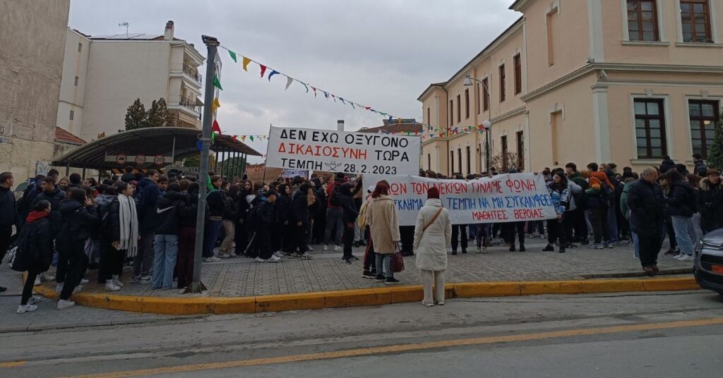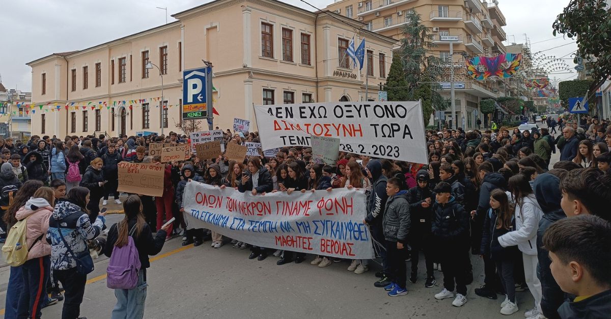 «Όλων των νεκρών γίναμε φωνή, το έγκλημα στα Τέμπη να μη συγκαλυφθεί» – Μαθητές Βέροιας