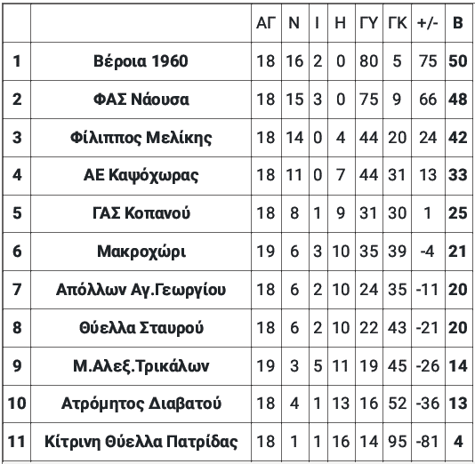 Α ΕΠΣ Ημαθίας: Τα αποτελέσματα και η βαθμολογία της 20ης αγωνιστικής