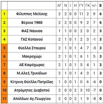 Α ΕΠΣ Ημαθίας: Τα αποτελέσματα και η βαθμολογία της 2ης αγωνιστικής (28/9)