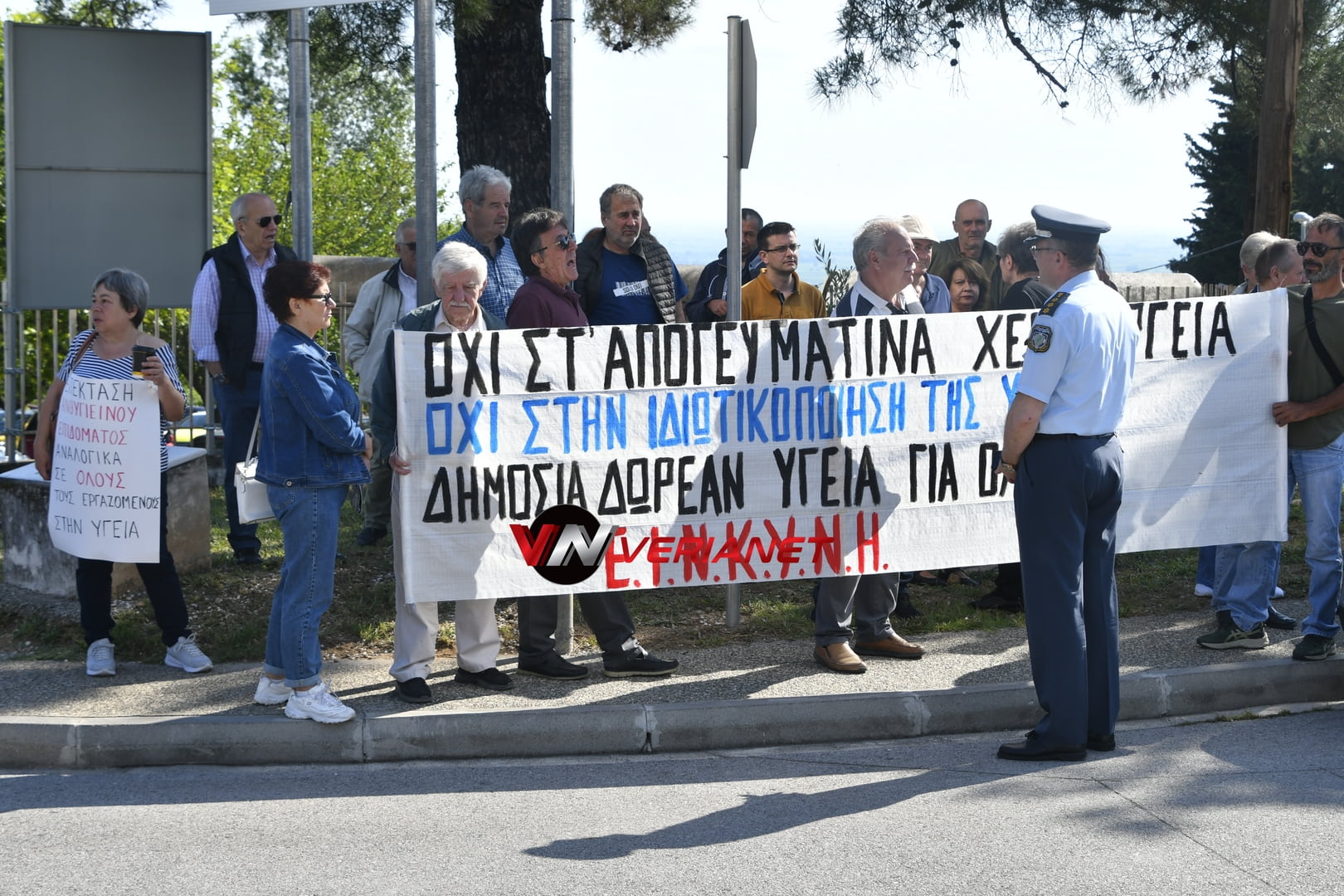 Μπροστά σε δυνάμεις της ΟΠΚΕ , και της αστυνομίας εργαζόμενοι , συνταξιούχοι βρωντοφώναξαν ενάντια στην υποβάθμιση και ιδιωτικοποίηση του δημόσιου συστήματος Υγείας .