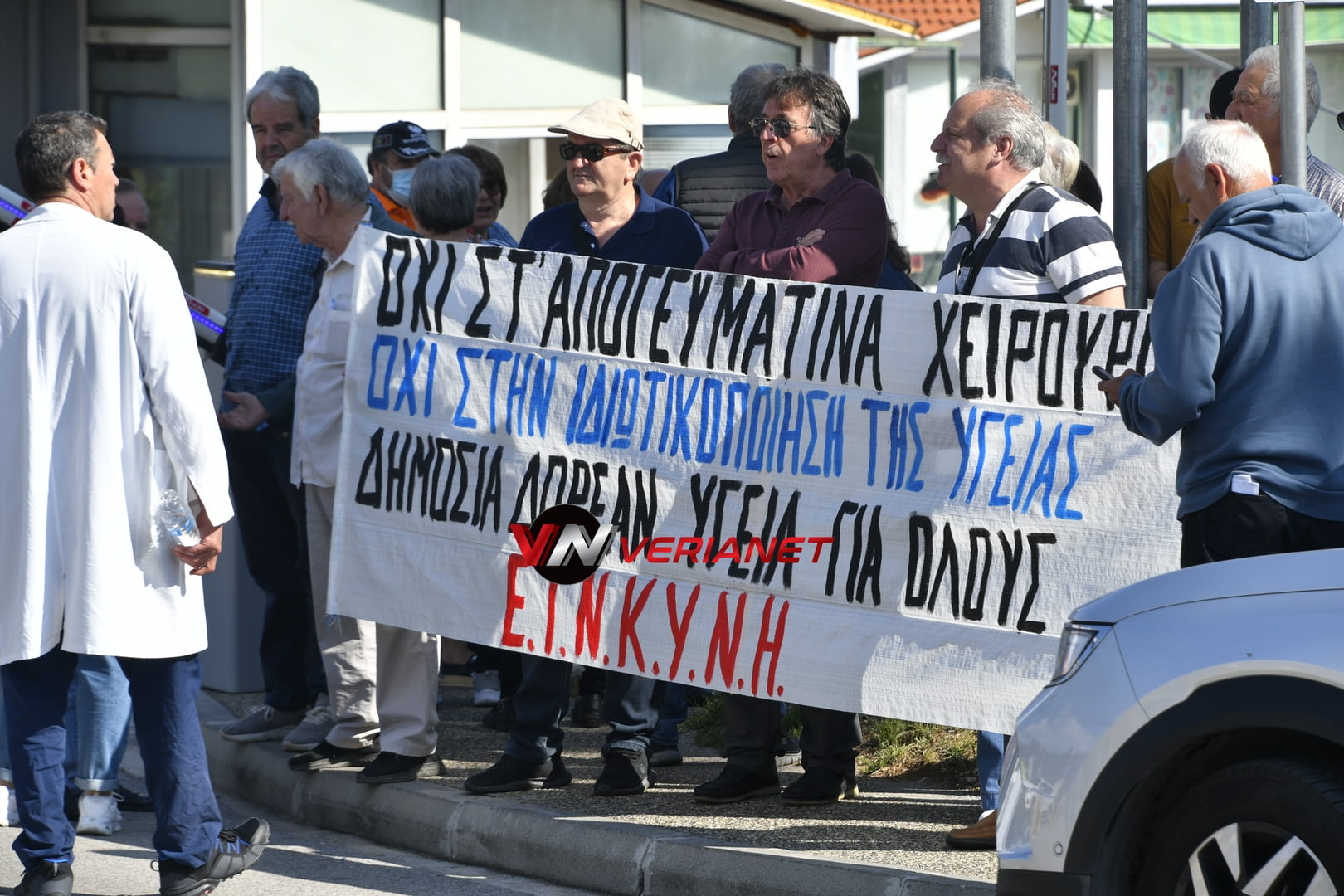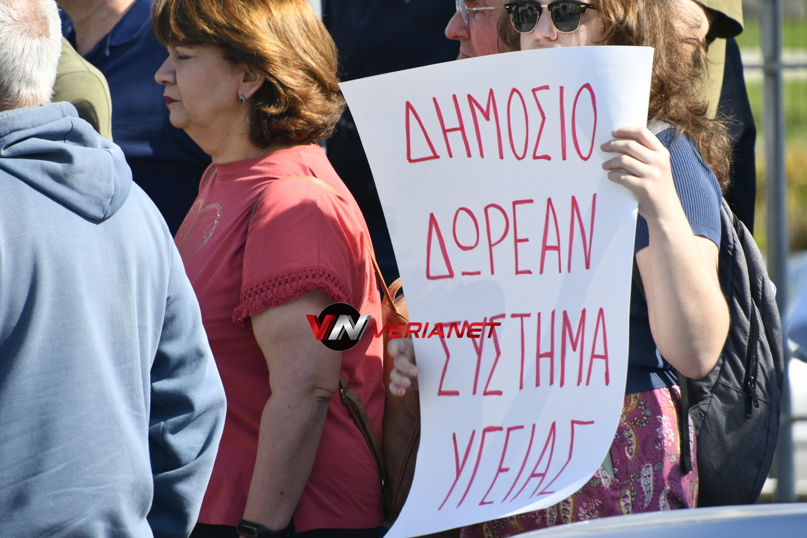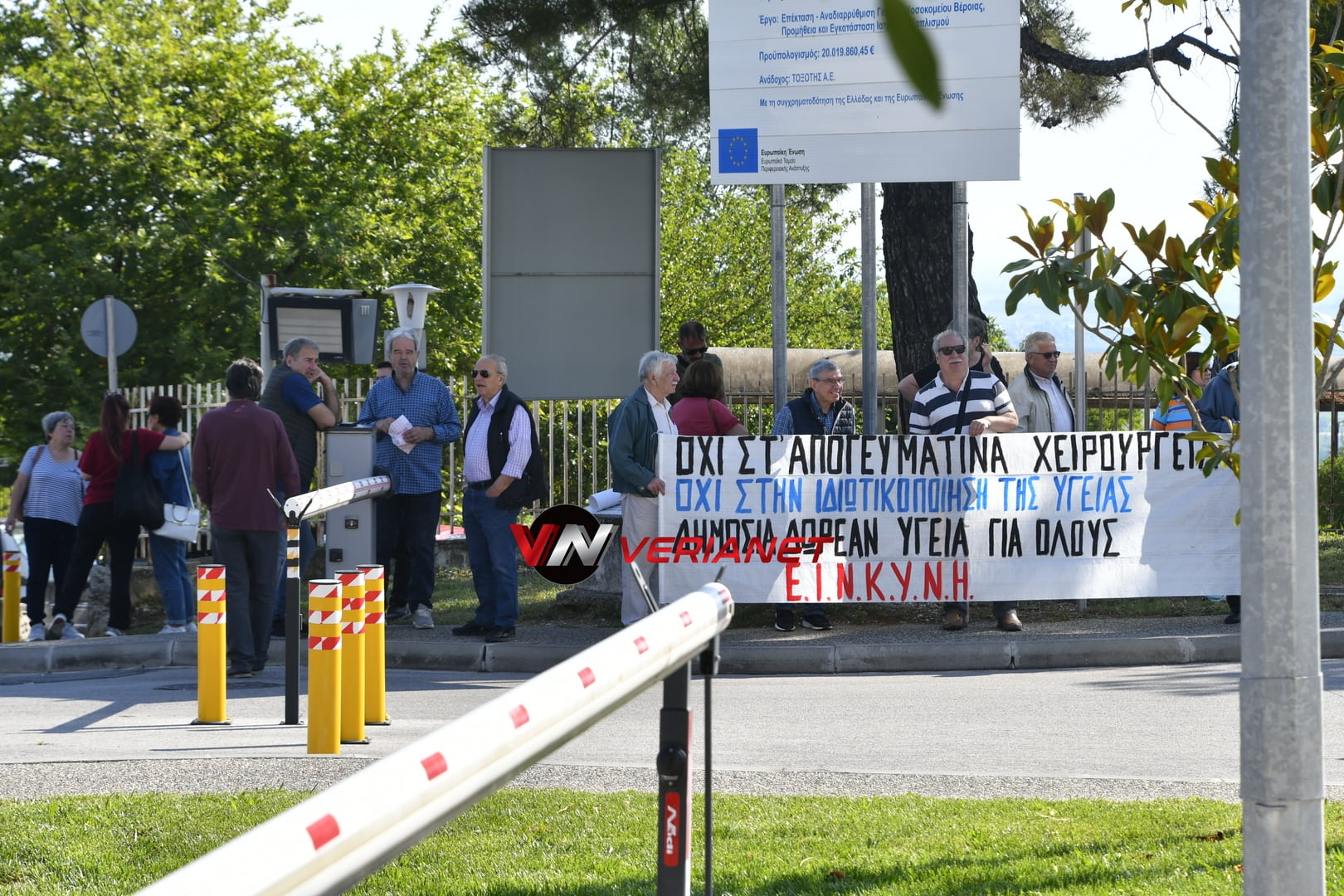 Δυναμική ήταν η παρέμβαση που πραγματοποιήθηκε σήμερα κατά τη διάρκεια της επίσκεψης του Α . Γεωργιάδη στο νοσοκομείο Βέροιας, σωματείων ύστερα από κάλεσμα της ένωσης ιατρών νομού Ημαθίας.