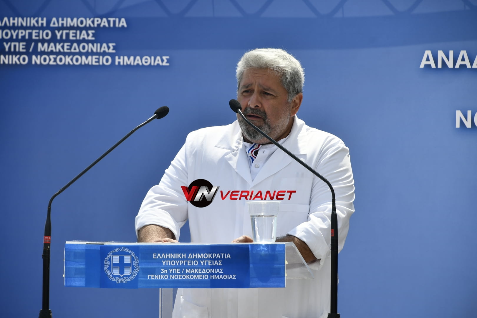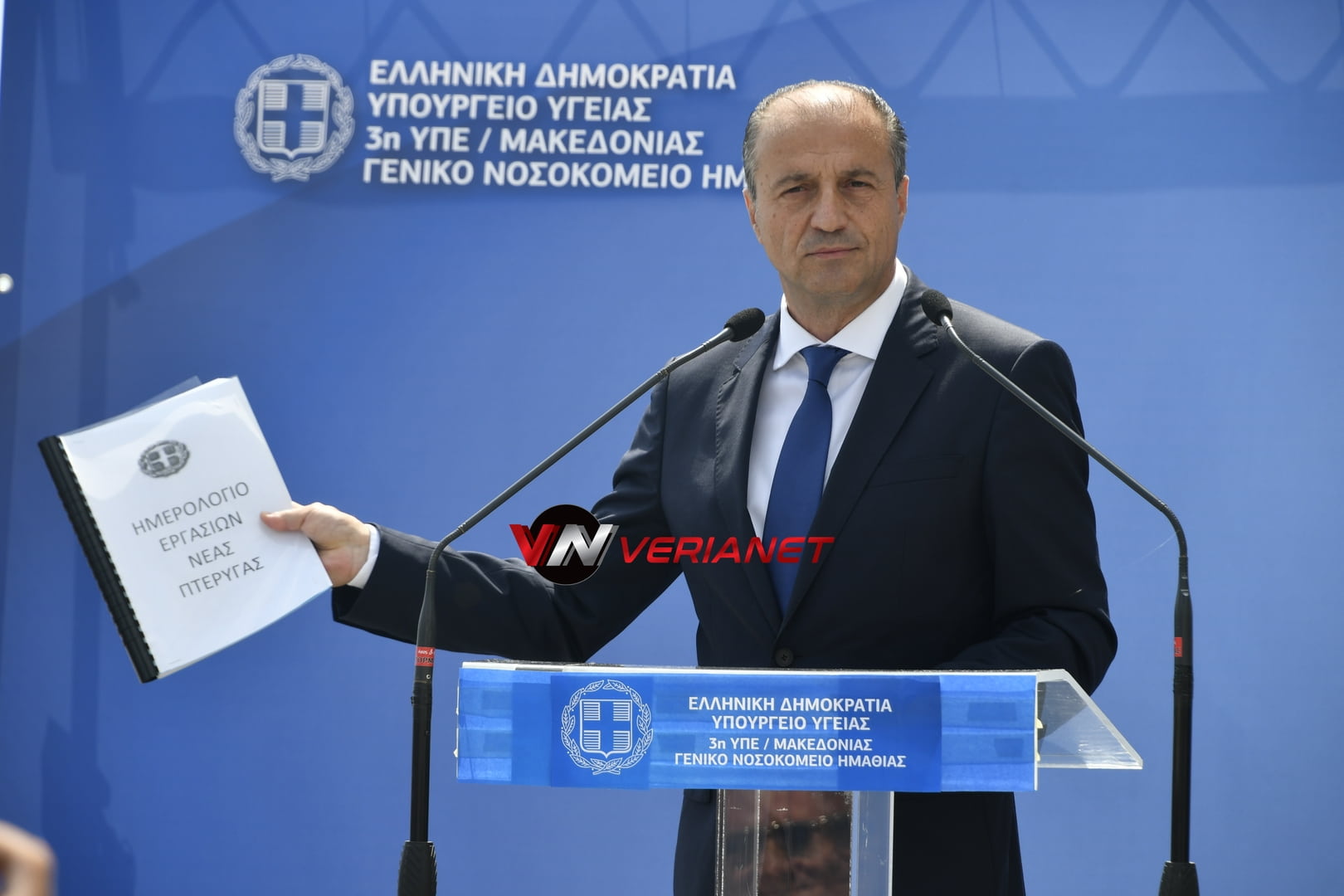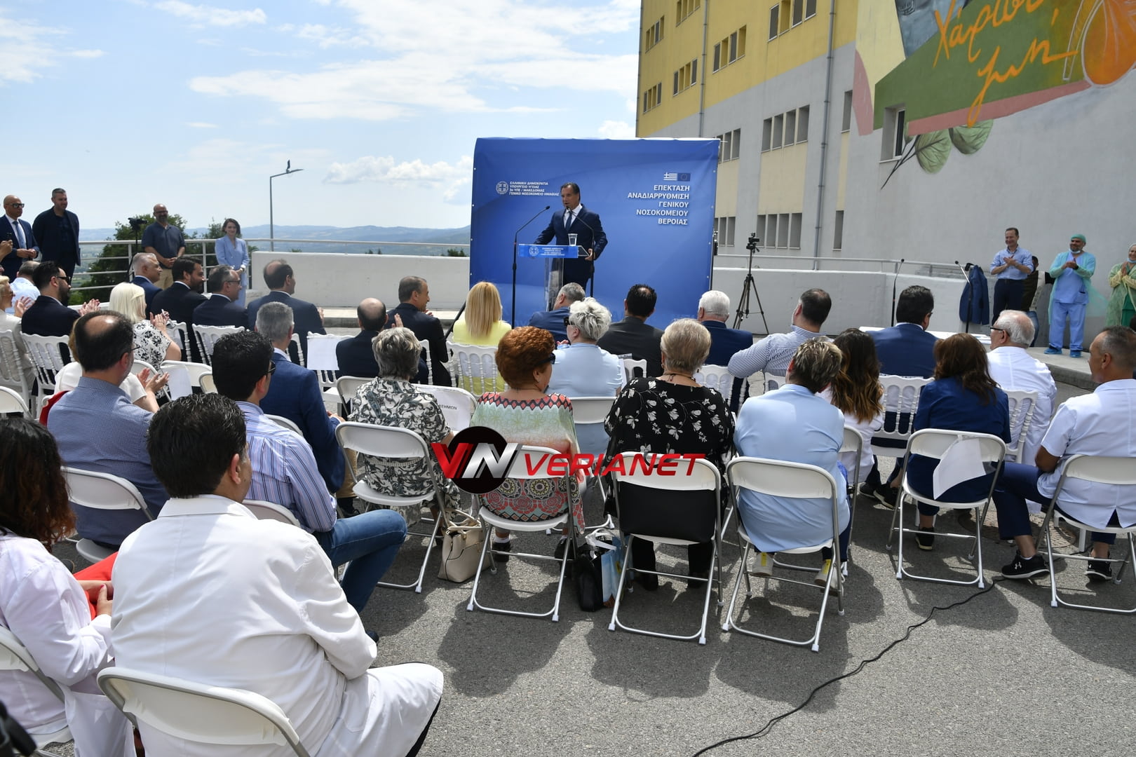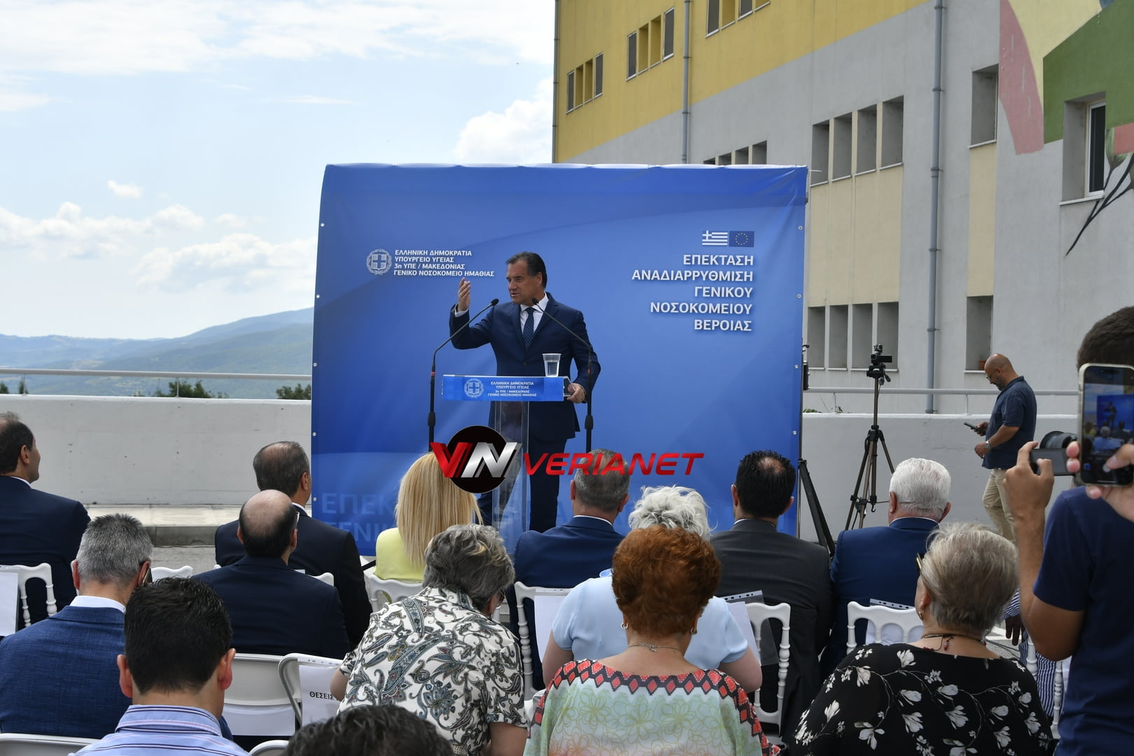 Σε μια «εργολαβική» εκδήλωση υπό τον καυτό ήλιο, ο υπουργός υγείας Άδωνις Γεωργιάδης εγκαινίασε τη νέα πτέρυγα του νοσοκομείου Βέροιας.