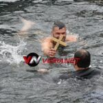 Το μεσημέρι, στο Δημοτικό Κολυμβητήριο Αλεξάνδρειας, τελέστηκε ο αγιασμός των υδάτων και έγινε η ρίψη του Σταυρού.