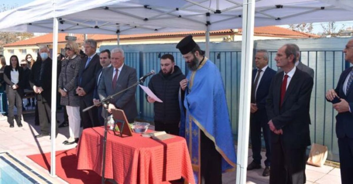 Μετά την πρωινή δοξολογία στον Ιερό Ναό Κοιμήσεως Θεοτόκου, επίσημοι και κόσμος παραβρέθηκαν στο Δημοτικό Κολυμβητήριο της πόλης. Ο Ιερέας ευλόγησε καθαγιάζοντας τα ύδατα και ρίχνοντας τον Σταυρό ως ορίζει το Θείο Μυστήριο.