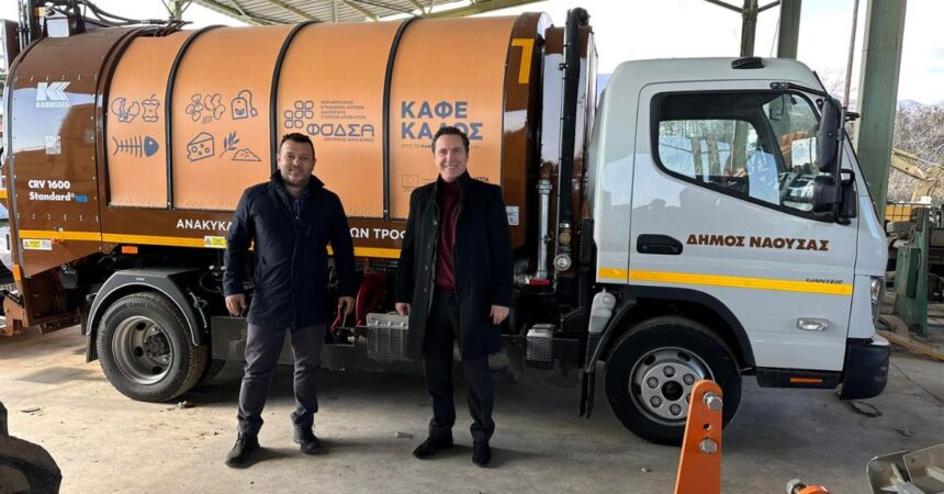 Ένα σύγχρονο απορριμματοφόρο συλλογής βιοαποβλήτων στο πλαίσιο υλοποίησης της πράξης «Διαχείριση Βιοαποβλήτων Περιφέρειας Κεντρικής Μακεδονίας», απέκτησε πρόσφατα η Υπηρεσία Καθαριότητας του Δήμου Νάουσας, μέσω δωρεάς από τον Περιφερειακό Σύνδεσμο Φορέων Διαχείρισης Στερεών Αποβλήτων (Φο.Δ.Σ.Α.) Κεντρικής Μακεδονίας.