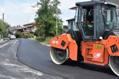 Ξεκίνησε η ασφαλτόστρωση του κεντρικού δρόμου στα Λευκάδια Νάουσας
