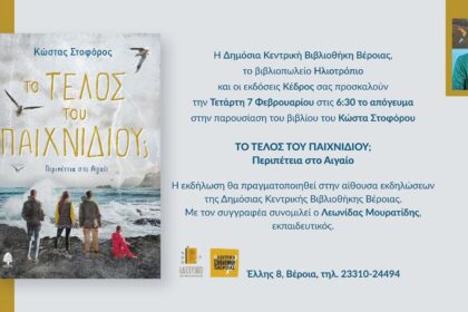 “Το τέλος του παιχνιδιού; Περιπέτεια στο Αιγαίο” – Το νέο βιβλίο του Κώστα Στοφόρου στη Δημόσια Κεντρική Βιβλιοθήκη (7/2/24)