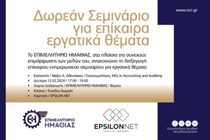 Δωρεάν Σεμινάριο για επίκαιρα εργατικά θέματα στο Επιμελητήριο Ημαθίας (12/2/24)