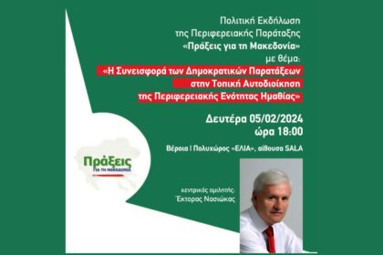 Βέροια: Πολιτική εκδήλωση της Περιφερειακής Παράταξης “Πράξεις για τη Μακεδονία” (5/2/24)
