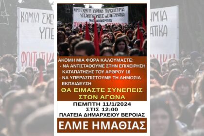 ΕΛΜΕ Ημαθίας: Όχι στα Ιδιωτικά Πανεπιστήμια – Συλλαλητήριο στην πλατεία Δημαρχείου (11/1/24)