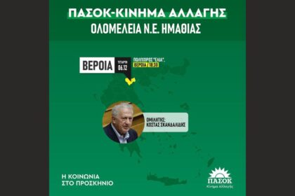 Βέροια: Ολομέλεια μελών του ΠΑΣΟΚ – ΚΙΝΑΛ Ημαθίας με ομιλητή τον Κώστα Σκανδαλίδη (6/12/23)