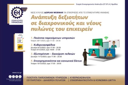 Νέος κύκλος δωρεάν webinar για επιχειρήσεις από το Επιμελητήριο Ημαθίας Ανάπτυξη δεξιοτήτων…