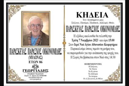 Σε ηλικία 86 ετών άφησε την τελευταία του πνοή ο Παρασκευάς Οικονομίδης.…