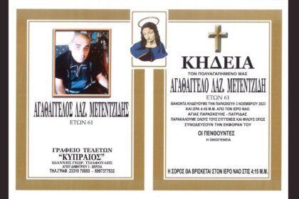 Σε ηλικία 61 ετών έφυγε από τη ζωή ο Αγαθάγγελος Μετεντζίδης. Η…