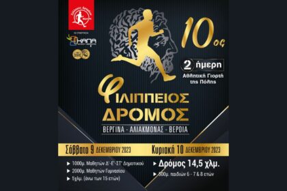 Βέροια: 10ος Φιλίππειος δρόμος 14,5χλμ & 5χλμ (9,10/12/23)