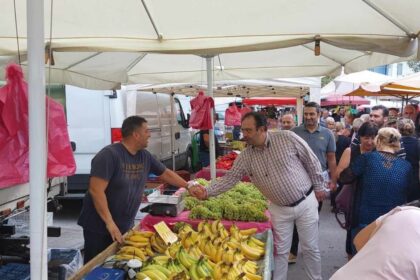 Ο Κώστας Βοργιαζίδης δίπλα στους παραγωγούς και εμπόρους της Λαϊκής Αγοράς Μακροχωρίου – Περιοδεία σε Μακροχώρι (Απ. Παύλο)