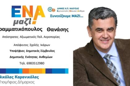 Ο Θανάσης Γραμματικόπουλος υπ. Δημοτικός Σύμβουλος Νάουσας με τον συνδυασμό “ΕΝΑ ΜΑΖΙ”
