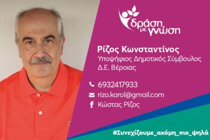 Ο Κώστας Ρίζος υποψήφιος Δημοτικός Σύμβουλος Βέροιας με τον Συνδυασμό “Δράση με Γνώση”