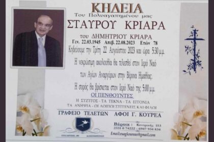 Σε ηλικία 78 ετών άφησε την τελευταία του πνοή ο Σταύρος Κριαράς.…