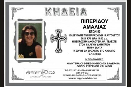 Σε ηλικία 53 ετών άφησε την τελευταία της πνοή η Αμαλία Πιπερίδου.…