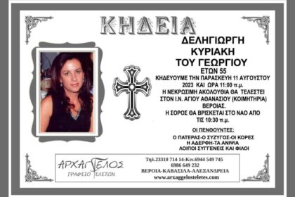 Σε ηλικία 55 ετών έφυγε από τη ζωή η Κυριακή Δεληγιώργη. Η…
