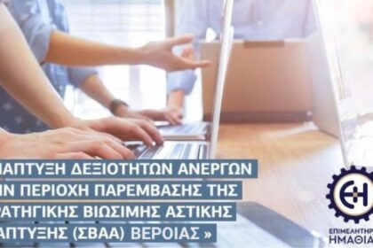 Πρόσκληση Εκδήλωσης Ενδιαφέροντος: Υποψήφιων ωφελούμενων του προγράμματος «Ανάπτυξη δεξιοτήτων ανέργων στην περιοχή παρέμβασης της Στρατηγικής Βιώσιμης Αστικής Ανάπτυξης (ΣΒΑΑ) Βέροιας» ΚΩΔ. ΟΠΣ (MIS) 5056519