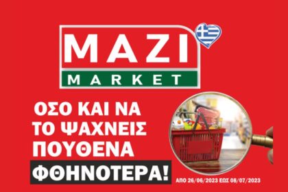 MAZI MARKET: Νέο φυλλάδιο Προσφορών 26/6/23 – 8/7/23 MAZI MARKET με μόνιμα…