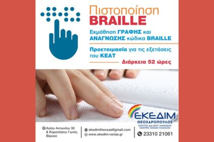 ΕΚΕΔΙΜ Θεοχαρόπουλος: Νέα Τμήματα Γραφής Braille