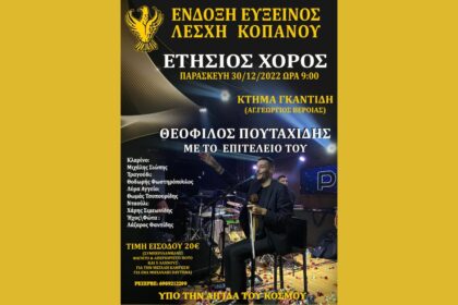 Η Εύξεινος Λέσχη Κοπανού διοργανώνει την Παρασκευή 30/12 τον ετήσιο χορό στο…