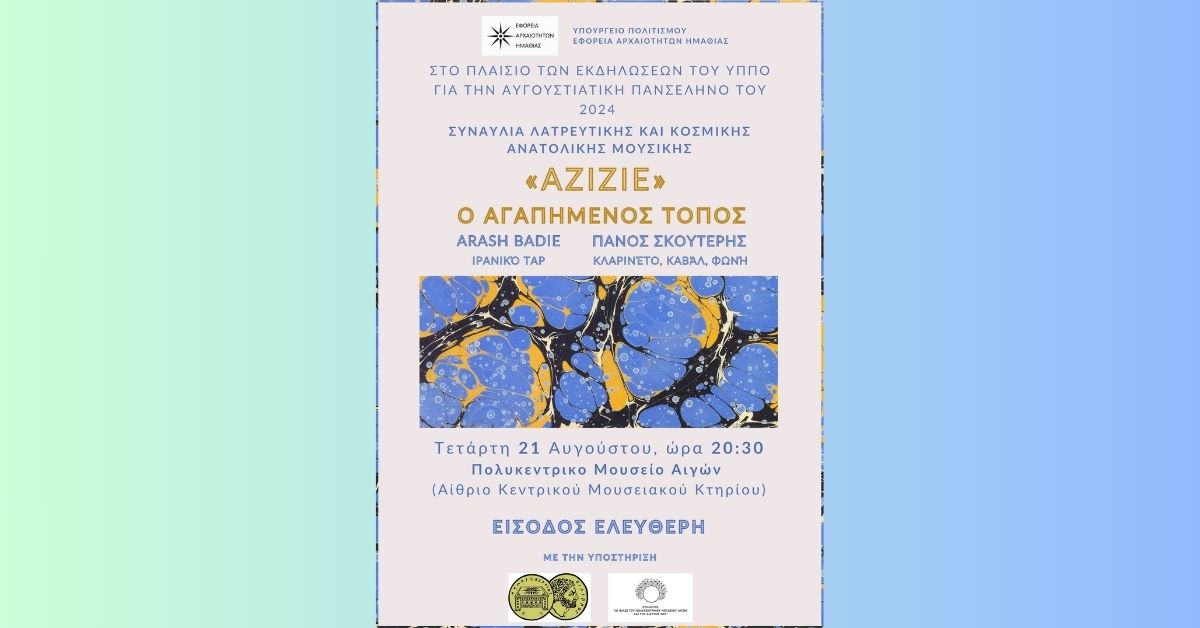 «Azizie, ο Αγαπημένος Τόπος» – Συναυλία ανατολίτικης μουσικής στο αίθριο του Κεντρικού Μουσειακού Κτηρίου των Αιγών (21/8/24)