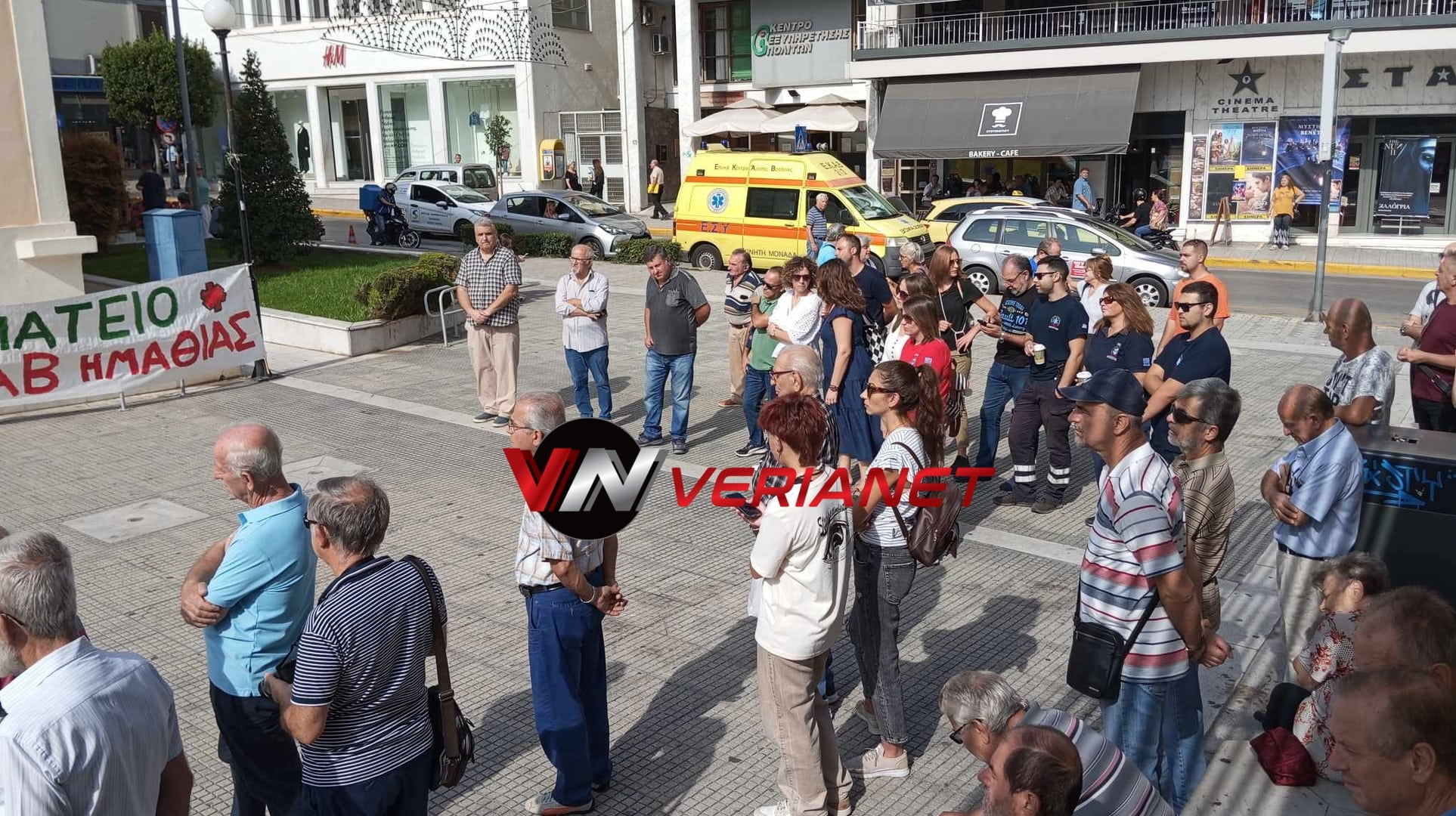 Το πρωί της Πέμπτης 21 Σεπτεμβρίου, στην πλατεία Δημαρχείου, συμμετείχαν το Εργατικό Κέντρο Ημαθίας, το Συνδικάτο Τροφίμων, το Σωματείο Συνταξιούχων ΙΚΑ Βέροιας- Ιδιωτικών Υπαλλήλων, η Ένωση Νοσοκομειακών Γιατρών και Κέντρων Υγείας Ημαθίας, το Σωματείο ΕΚΑΒ Ημαθίας.