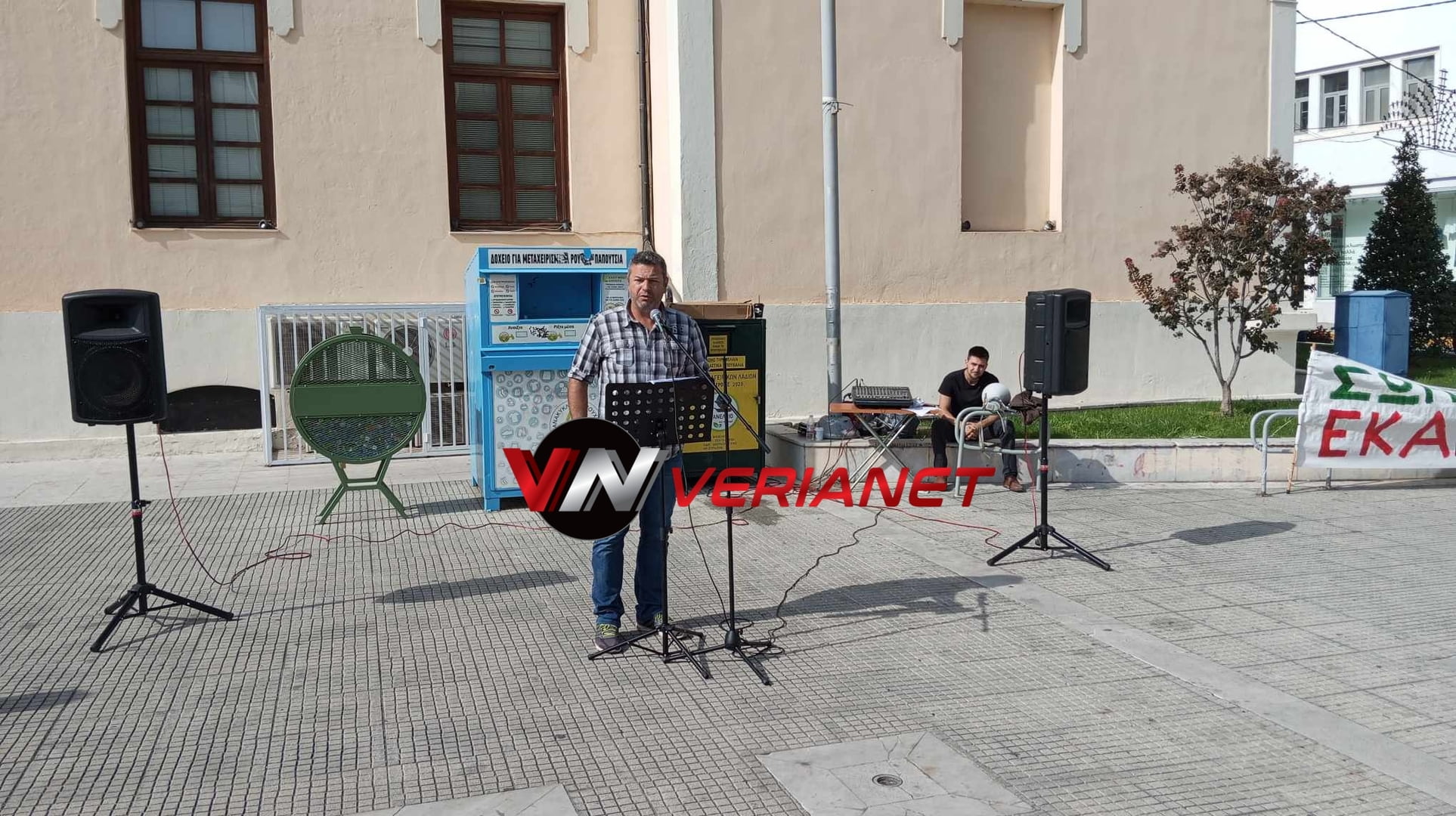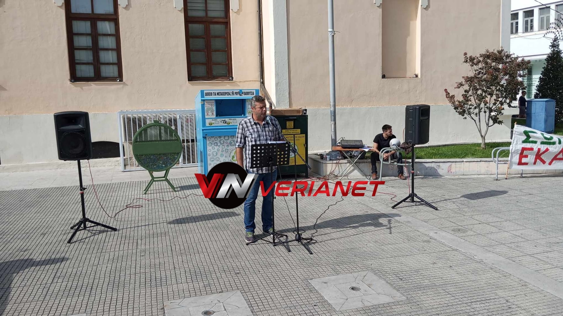 Την κεντρική ομιλία έκανε ο Πρόεδρος του Εργατικού Κέντρου Ημαθίας, Νίκος Ναζμέ.΄