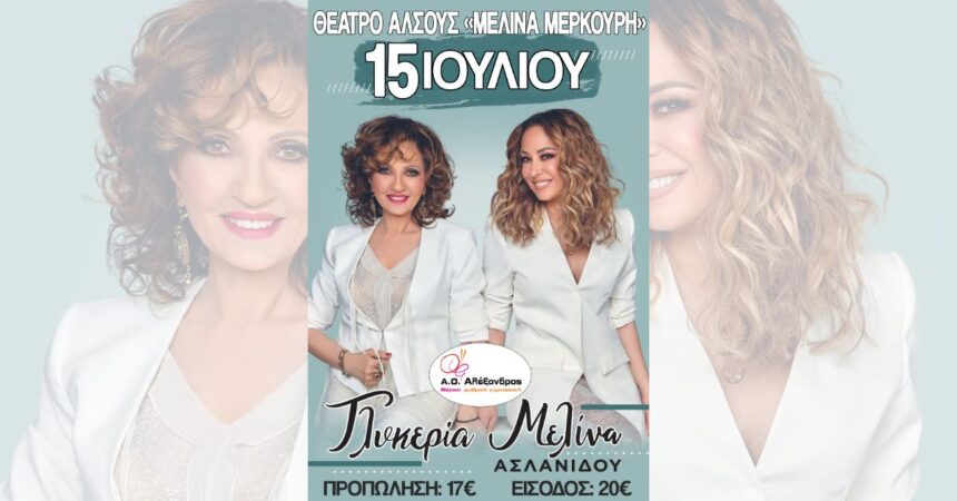 Η Κ.Ε.Π.Α Δήμου Βέροιας στο πλαίσιο των εκδηλώσεων ‘Άλσος ’23 «Το καλοκαίρι αλλάζει» φιλοξενεί την Γλυκερία και Μελίνα Ασλανίδου «Πάμε μαζί» το Σάββατο 15 Ιουλίου, στις 9.30 μ.μ. στο Θέατρο Άλσους «Μελίνα Μερκούρη».