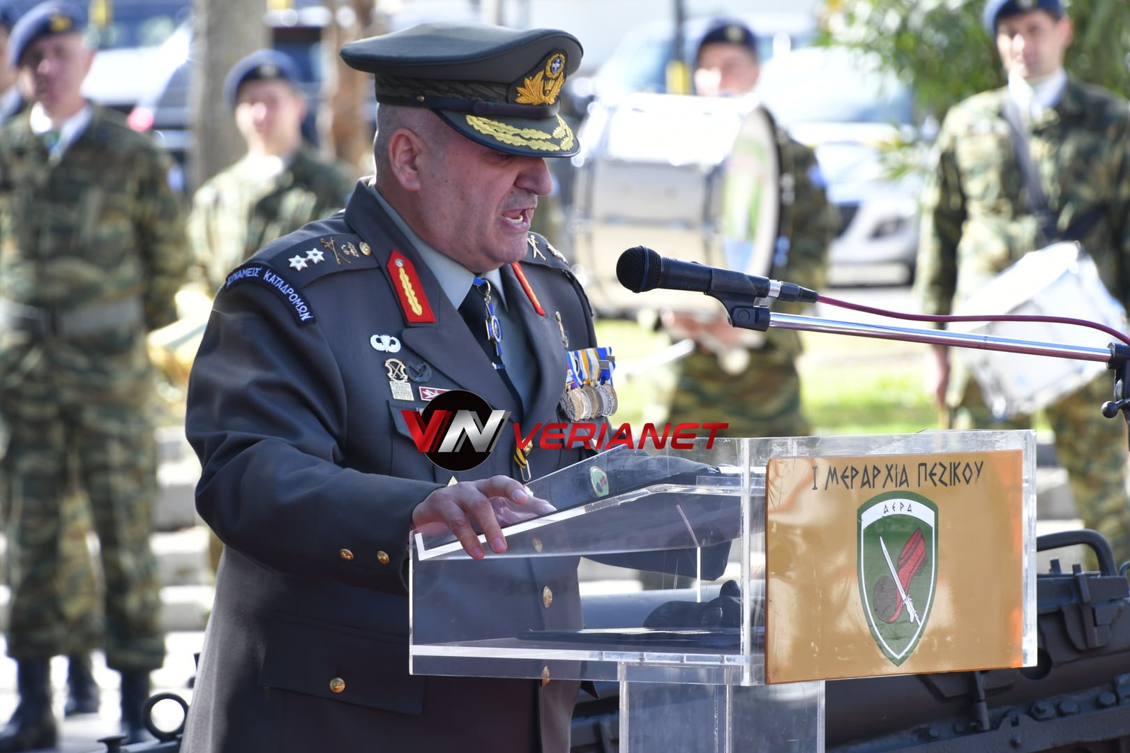 Αισθάνομαι ιδιαίτερα υπερήφανος, για την εξαιρετική τιμή που έγινε στο πρόσωπό μου να αναλάβω τη Διοίκηση της ιστορικής 1ης Μεραρχίας του Στρατού μας, που έγραψε με ανεξίτηλα γράμματα το δικό της κεφάλαιο στην ένδοξη στρατιωτική ιστορία αυτού του τόπου.