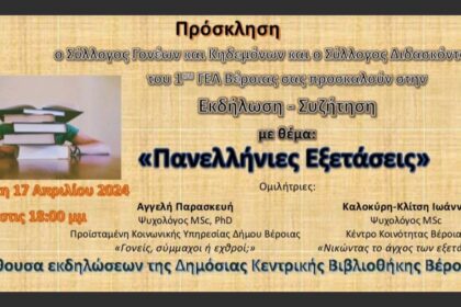 Ημερίδα με θέμα τις «Πανελλήνιες Εξετάσεις» από το 1ο ΓΕΛ Βέροιας (17/4/24)