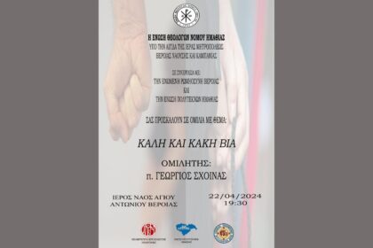 “Καλή και Κακή βία” – Ομιλία από την Ένωση Θεολόγων Ημαθίας (22/4/24)