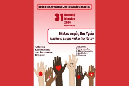 Βέροια: Ενημερωτική εκδήλωση για την εθελοντική αιμοδοσία και τη δωρεά μυελού των οστών (31/3/24)