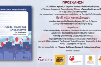 Παιδί, πόλη και σχεδιασμός: Παρουσίαση του βιβλίου της Γαρυφαλλιάς Κατσαβουνίδου στη Δημόσια Κεντρική Βιβλιοθήκη (12/2/24)