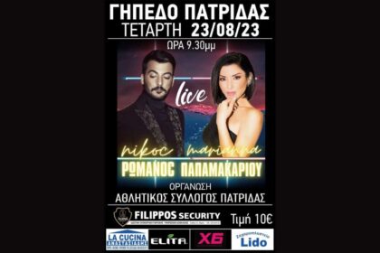 Λαϊκή βραδιά στο γήπεδο Πατρίδας με Νίκο Ρωμανό και Μαριάννα Παπαμακαρίου (23/8/23)
