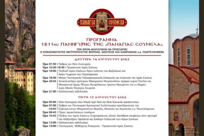 1611η Πανήγυρη της “Παναγίας Σουμελά” – Εορταστικές εκδηλώσεσις στην Καστανιά Ημαθίας