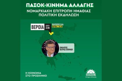 Πρόσκληση της Νομαρχιακής Επιτροπής ΠΑΣΟΚ-Κινήματος Αλλαγής Ημαθίας στην πολιτική εκδήλωση την Πέμπτη…