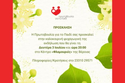 Πρόσκληση για την ψυχαγωγική εκδήλωση της Πρωτοβουλίας για το Παιδί στις Φλαμουριές (3/7/23)