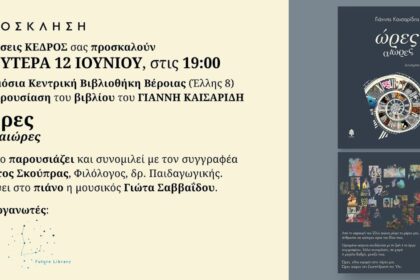 Βέροια: «ώρες αιώρες» το βιβλίο του Γιάννη Καισαρίδη στη Δημόσια Κεντρική Βιβλιοθήκη (12/6/23)
