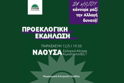 Νάουσα: Προεκλογική εκδήλωση Ν.Ε. ΠΑΣΟΚ – ΚΙΝΑΛ Ημαθίας (12/5/23)