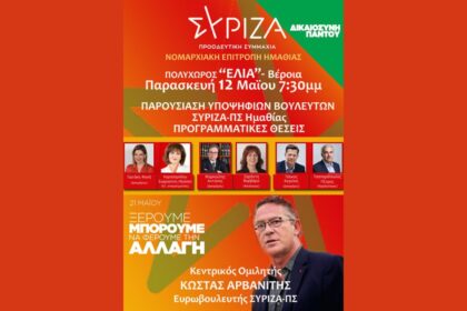 Βέροια: Δικαιοσύνη Παντού – Ανοιχτή πολιτική εκδήλωση του ΣΥΡΙΖΑ – ΠΣ (12/5/23)